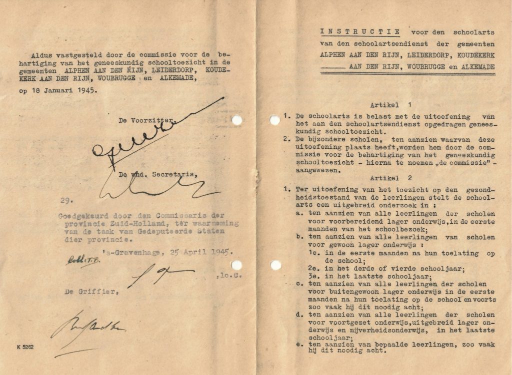 Elke week wordt er op site van het Gemeentearchief aan de hand van een archiefstuk uit de collectie een kort artikel gepubliceerd om te laten zien wat voor materiaal er in de archieven te vinden is. Deze keer gaat het over de Schoolartsendienst kring Alphen aan den Rijn.