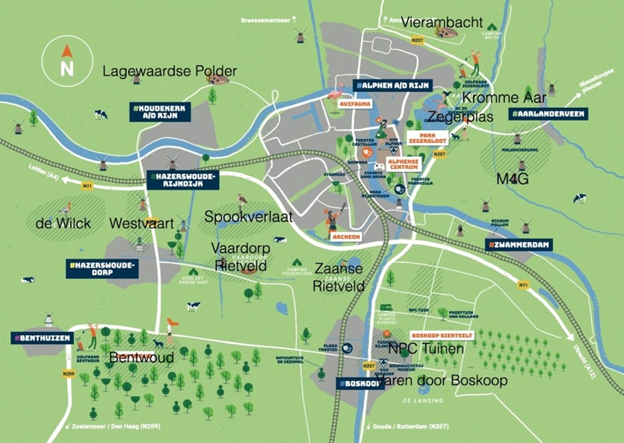 ‘Tijdreis door het historische landschap van Alphen en omgeving’, door Han Hendrickx. “God schiep de aarde, behalve Holland want dat deden de Hollanders zelf”. Dit gezegde is ook van toepassing op Alphen en omgeving. Han neemt ons in zijn verhaal mee in een tijdreis mee door het historisch landschap van Alphen en omgeving. Hij laat ons zien hoe we als mensen al meer dan 2000 jaar aan de slag zijn om het landschap (en het water) naar onze hand te zetten. Deze reis begint met het prehistorische landschap onderwater in de Zegerplas en eindigt in het moderne piepjonge landschap van het Bentwoud. Onderweg doen we (bijna) alle dorpen in de gemeente Alphen aan den Rijn aan. Een tijdreis met foto’s en korte filmpjes. En het leuke is, je kunt zo’n tijdreis zelf maken! Eventueel ook onder begeleiding van gidsen.