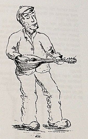 Hij liep vaak met hem mee en herinnert zich dat hij voor elke gezindte in de wijk wel een toepasselijk liedje wist. Voor de ene deur speelde hij ‘In ’t kroegje De rode lantaren’ en een deur verder ‘Nader mijn God bij U’: ‘’k Geloof niet dat dit hemzelf een fluit uitmaakte…als er maar gegeven werd, want hij speelde nog al eens voor nop. Toch is hij lange tijd een onbegrepen musicus geweest. Dat was trouwens geen wonder, want de meesten leefden geheel zonder muziek…week in week uit. Of je moest ’t zelf maken. Vandaar dat er hier en daar nog een verdwaald huisorgeltje slingerde. Zelfs toen Radio-distributie Hertog [W. den Hertog Azn. in de Hooftstraat, BD] zijn intrede deed was ’t voor velen nog echt te duur. Men moest al aan een zangkoor, fanfarekorps of kerk verbonden zijn anders groeide men op zonder melodieuze klanken.’ Stuivenberg kon ook verdienstelijk tekenen, want zo’n fragment over Renzebrink illustreerde hij met een zelfgemaakte schets, gesigneerd ‘P. St.’.